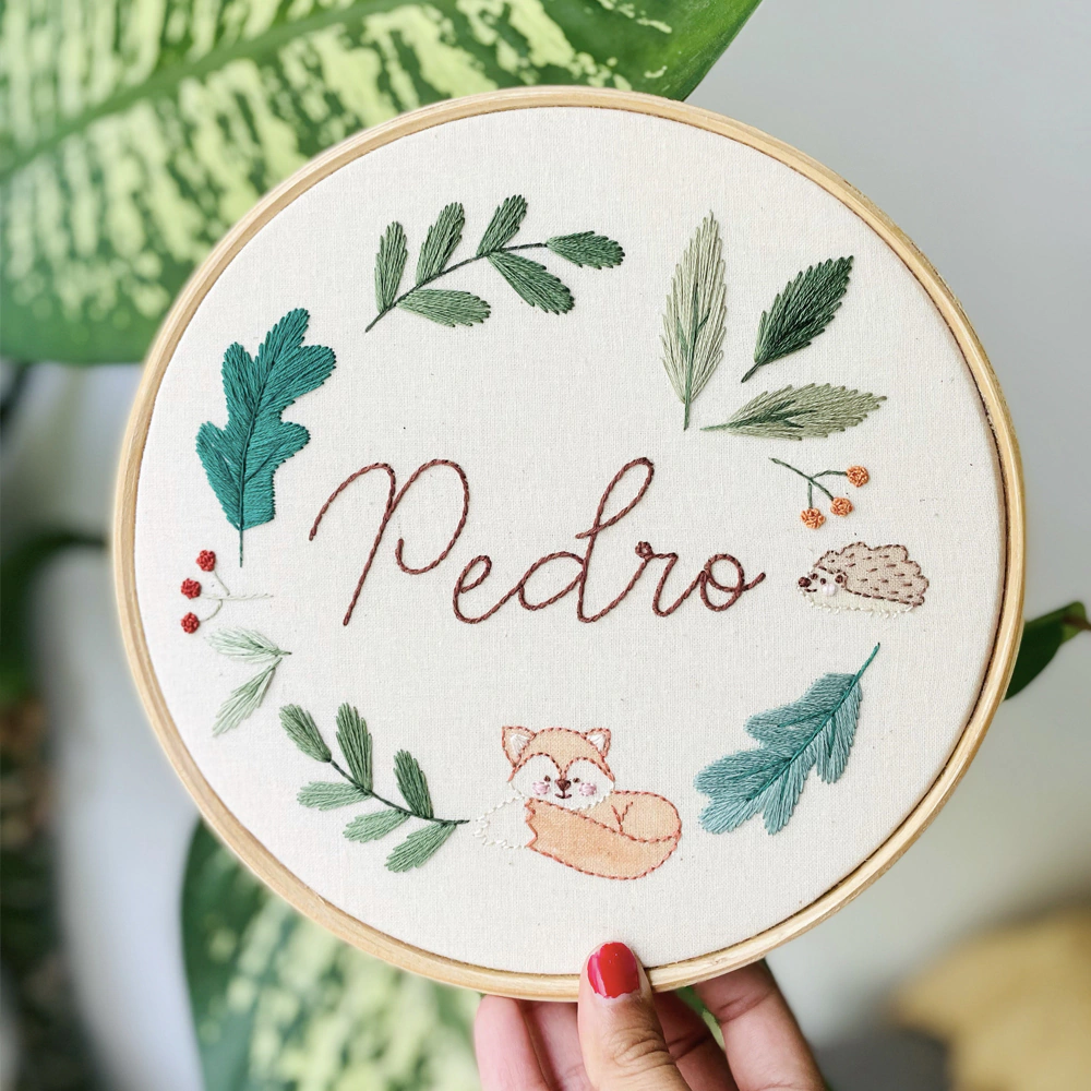 Porta Maternidade Bordado a mão Personalizado no Bastidor - Raposa